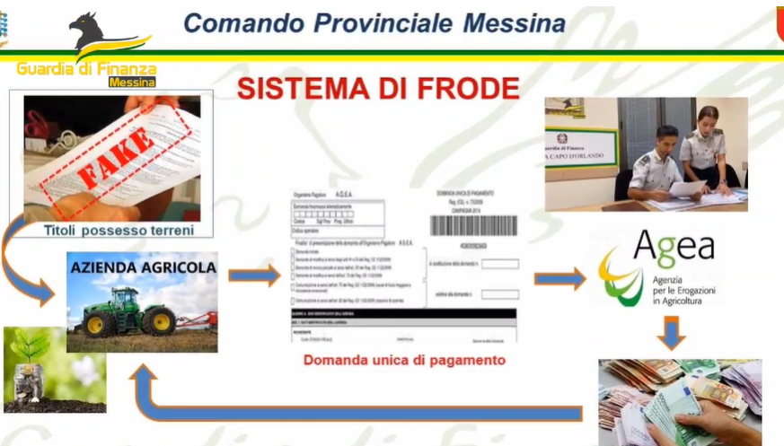 O administrador da empresa agrícola, através de múltiplos estratagemas, indicou nos pedidos de pagamento único encaminhados à Agea terrenos propriedade da Propriedade Estatal da Região da Sicília que nunca tinham sido efectivamente concedidos, terrenos propriedade de sujeitos totalmente inconscientes, bem como terrenos contratualmente destinado ao “pastoreio” , o que legalmente não permite solicitar contribuições. O administrador foi denunciado pelo crime de fraude agravada contra o Estado, e a empresa foi denunciada por aspectos relativos à responsabilidade das entidades por contra-ordenações decorrentes de crime.