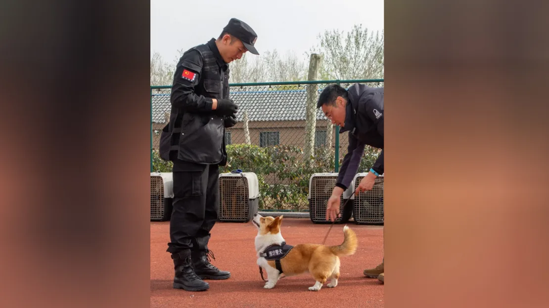 Do serviço de Sua Majestade Elizabeth II ao da polícia chinesa: Fuzai, um cachorrinho corgi cujo nome significa “menino sortudo”, é um cão policial reserva de Weifang, uma cidade na província de Shandong, que se tornou uma estrela popular nas redes sociais. média tangerinas médias.