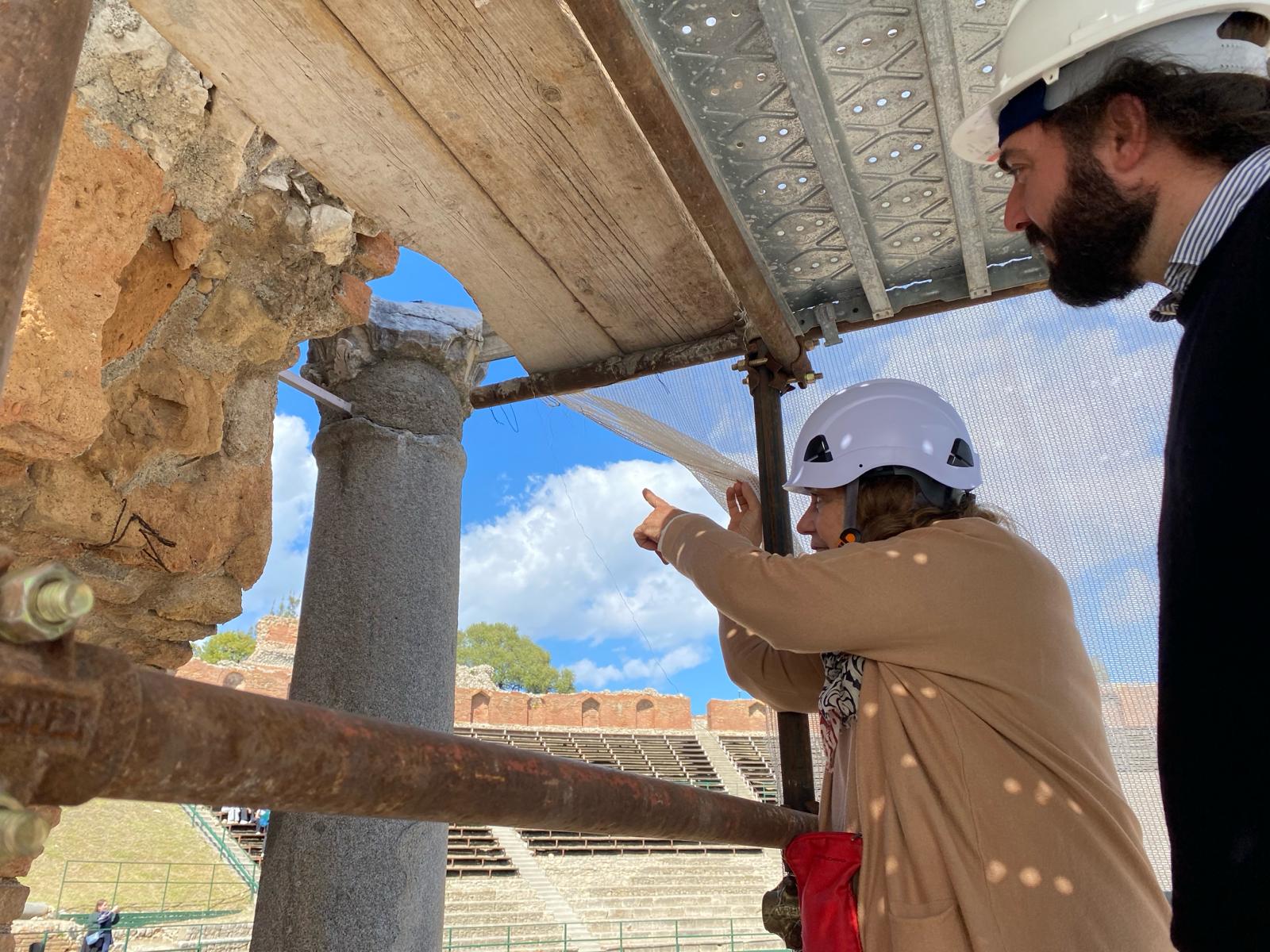 «É um momento fundamental para o estudo do teatro – explica o encenador e arqueólogo Gabriella Tigano – O edifício dos correios Scaenam será, de facto, objecto de análises direcionadas que permitirão a aquisição de novos dados sobre os materiais de construção utilizados. Tal como a composição dos antigos conglomerados, mas também dos tijolos de revestimento, antigos e modernos, que apresentam estados avançados de degradação: dados indispensáveis para avançar com o restauro deste sector do monumento”.