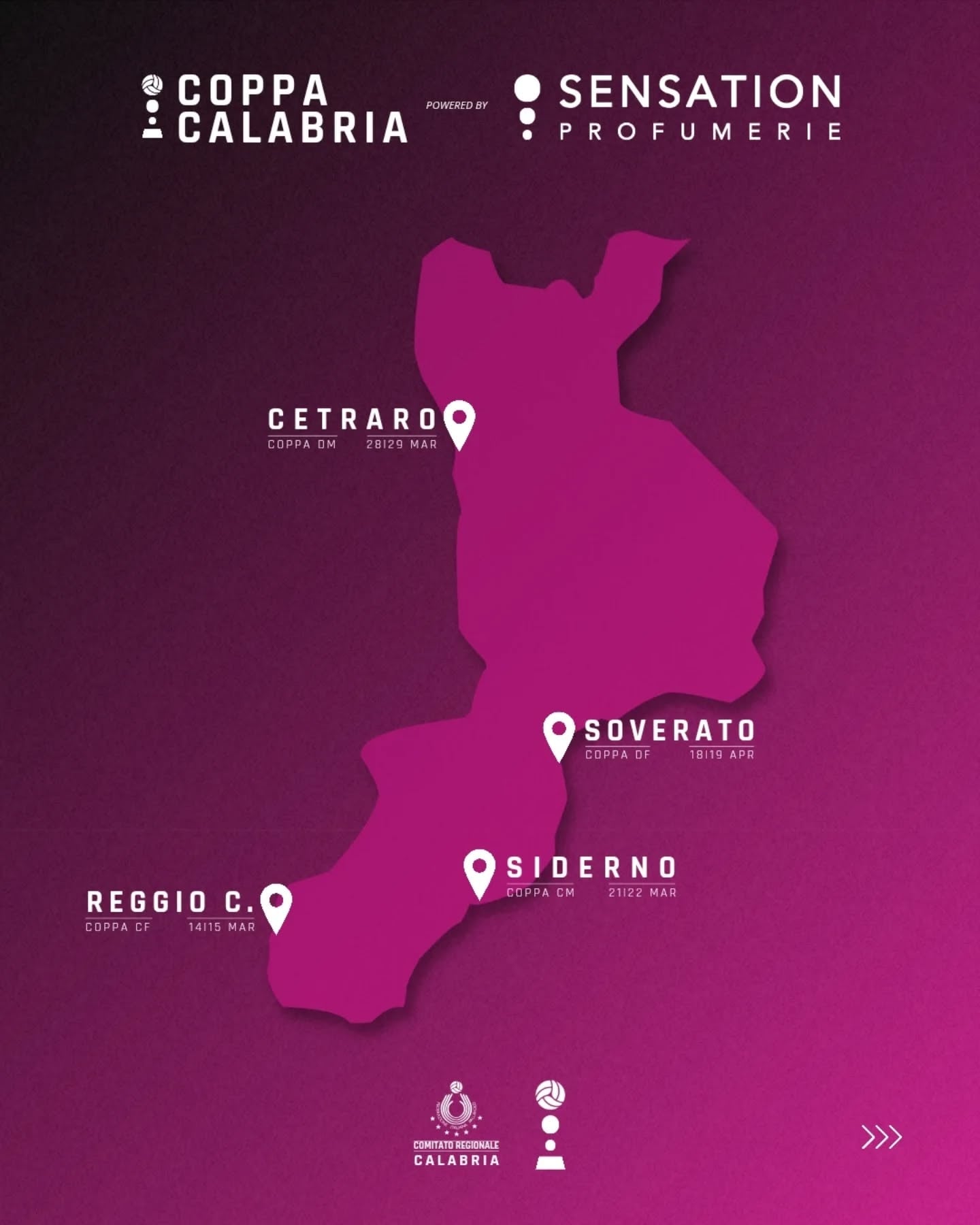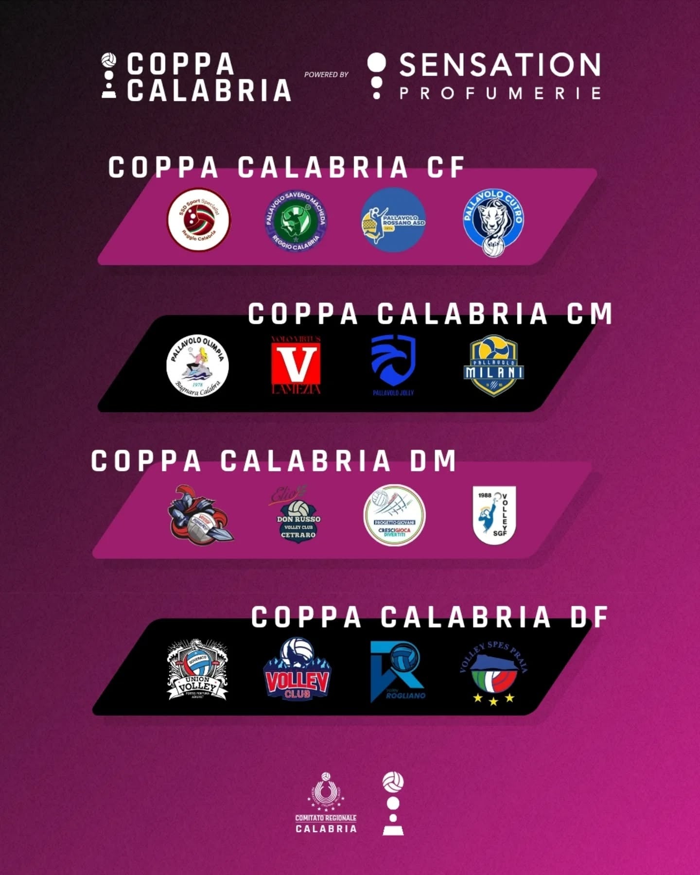 Com a aproximação da primavera, o grande espetáculo do vôlei também retorna com a Final Four feminina e masculina da Copa Calabria. Para a edição de 2026 a grande novidade é que todas as quatro competições (as duas da série C feminina e masculina e as duas da série D feminina e masculina) terão o seguinte nome: Calabria Cup powered by Sensation Profumerie.
